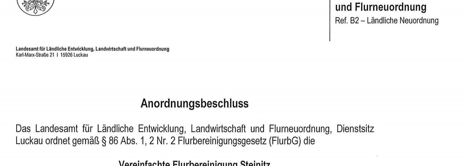 Das Landesamt für ländliche Entwicklung, Landwirtschaft und Flurbereinigung (LELF) hat am 03.12.2025 in Abstimmung mit dem Landwirtschaftsministerium das Flurbereinigungsverfahren Steinitz angeordnet. Neben der Neuordnung der Eigentums- und Rechtsverhältnisse auf der Grundlage des Abschlussbetriebsplanes zum Tagebau „Welzow-Süd“ leistet die Flurbereinigung einen Beitrag zur Behebung der agrarstrukturellen und landeskulturellen Defizite im Randbereich des ehemaligen Tagebaus.