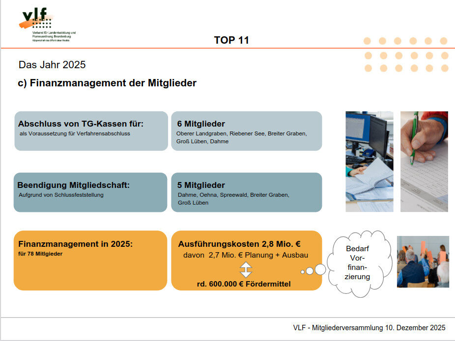 Der Vorstandsvorsitzende berichtete über die Arbeit und die Entwicklungen des vergangenen Jahres. Alle auf der Tagesordnung stehenden Punkte wurden beraten und die erforderlichen Beschlüsse erfolgreich gefasst. Dazu zählten unter anderem die Feststellung des Jahresabschlusses 2024 sowie die Verabschiedung des Haushaltsplans für das Jahr 2026.