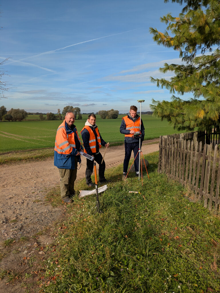 Im Rahmen des Bodenordnungsverfahrens Schönermark wurden im Oktober die Grenzpunkte in den bebauten Bereichen erfolgreich vor Ort vermarkt.